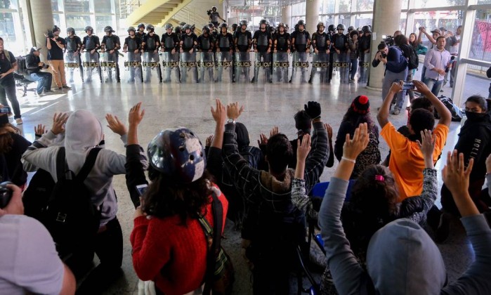 Os estudantes que ocupam o Centro Paula Souza, em protesto contra a falta de merenda em diversas unidades de ensino, receberam a notícia de reintegração do prédio na região central de São Paulo, nesta segunda (2/5). A Justiça autorizou a retirada dos estudantes e a entrada da Tropa de Choque da Polícia Militar.