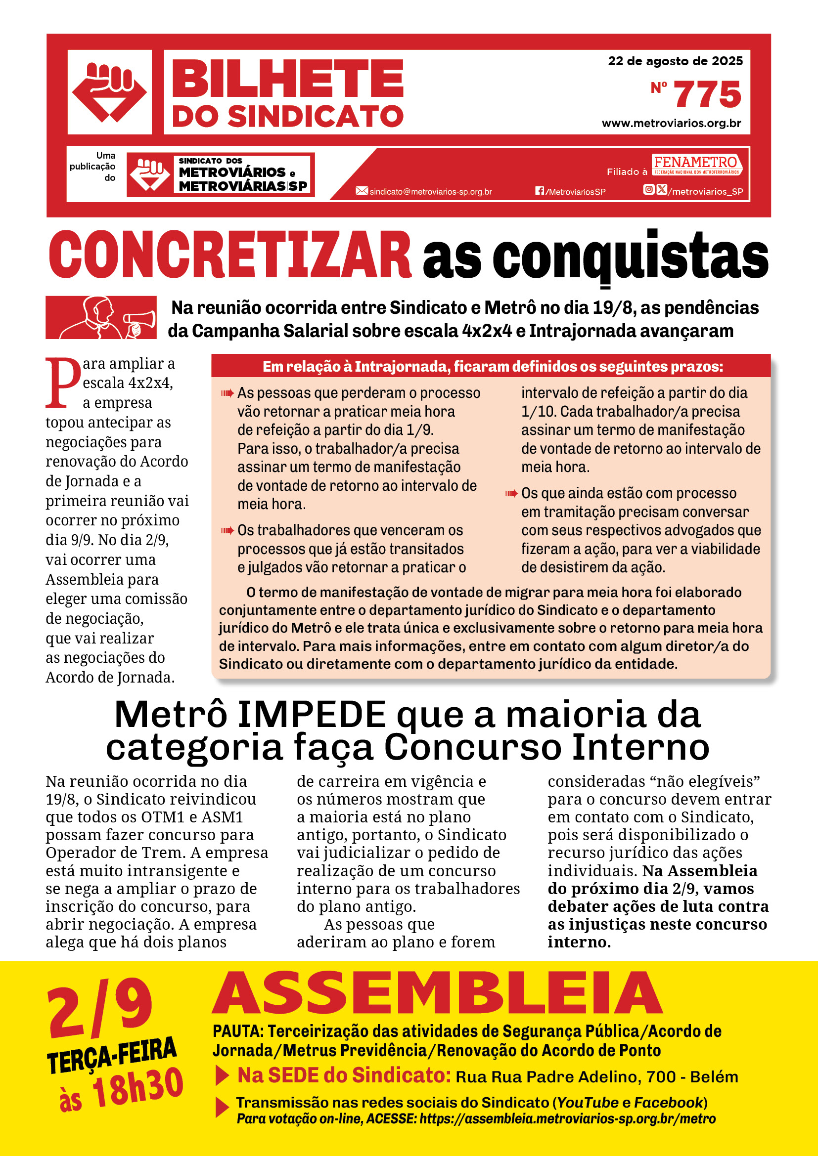 Acordos Coletivos Destaque Secundário LinhaUni Metrô ViaMobilidade ViaQuatro Acesse AQUI os ACORDOS COLETIVOS da categoria (Metrô e das privatizadas)