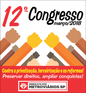 Na noite de 1º/3/2018 teve início o 12º Congresso dos Metroviários de SP. A abertura aconteceu na sede do Sindicato, no Tatuapé. Nos dias 2, 3 e 4/3, o evento teve prosseguimento na Colônia de Férias do Sintaema, em Nazaré Paulista (SP).