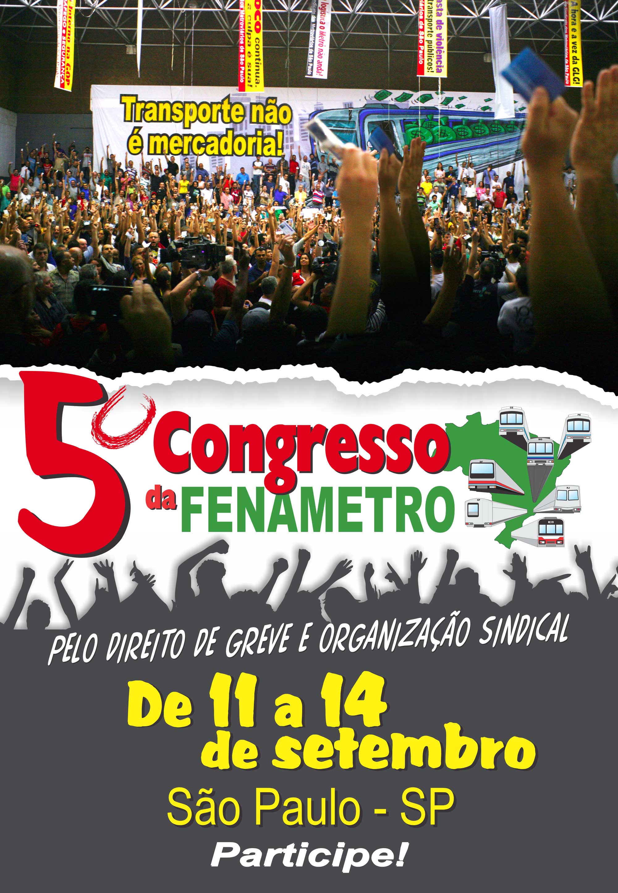 Entre os dias 11 e 14 de setembro será realizado, em São Paulo, o 5º Congresso Nacional da Fenametro (Federação Nacional dos Metroviários).