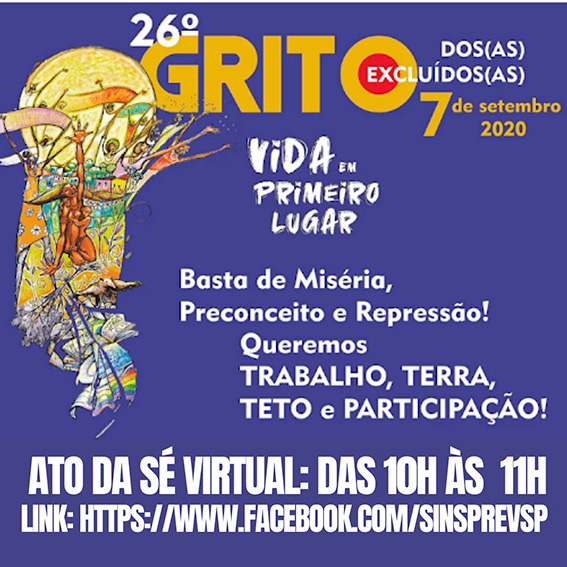 Organizada pela CNBB, Pastoral Operária, MST, MTST, Frentes Brasil Popular e Povo Sem Medo, entre outras entidades e movimentos sociais, a 26º edição do Grito dos Excluídos acontece em meio à pior crise econômica e social da história do país, consequência da