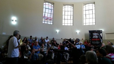 O auditório do Arquivo Público Municipal ficou lotado na manhã de quinta-feira, (11 de junho), durante o ato organizado pelo Fórum de Trabalhadores e Trabalhadoras por Verdade, Justiça e Reparação, com apoio da Comissão de Memória e Verdade da Prefeitura de São Paulo. O objetivo do encontro foi debater o trabalho das comissões já extintas, principalmente a Comissão Nacional da Verdade (CNV), e avaliar a perspectiva de implementação das recomendações constantes no relatório final da CNV.