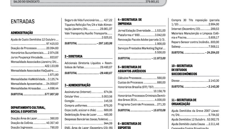 Destaque Prestando Contas Publicações Prestando Contas – Junho a Setembro/24 metroviarios 7 de novembro de 2024