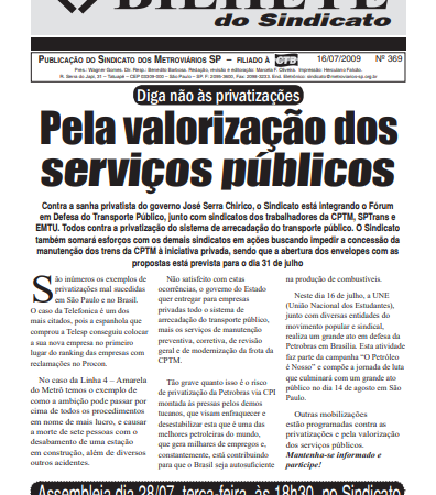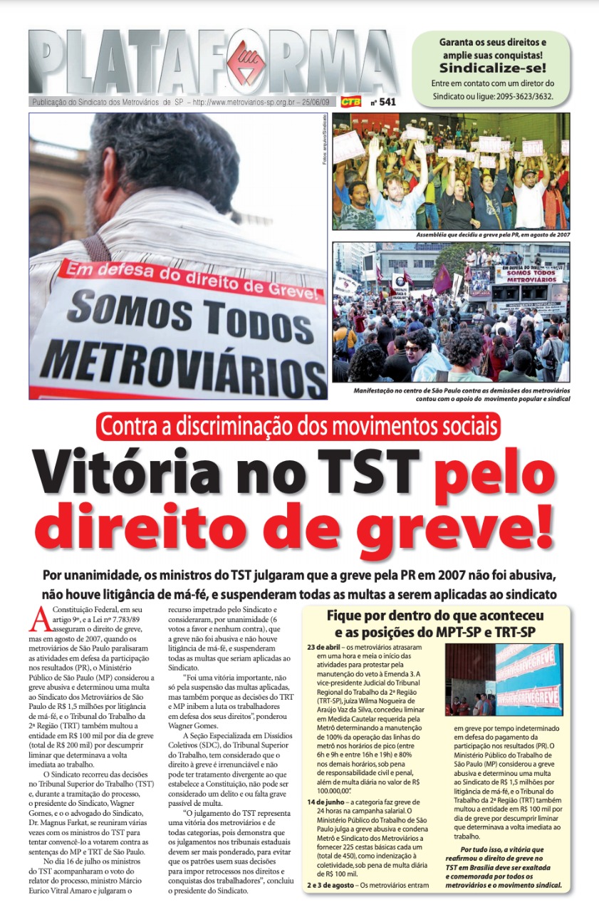 Últimas Notícias Campanha por plano de carreira e redução da jornada de trabalho metroviarios 18 de novembro de 2009
