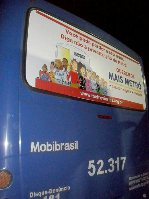 Banner da Campanha Contra a Privatização em ônibus