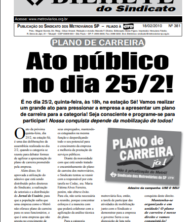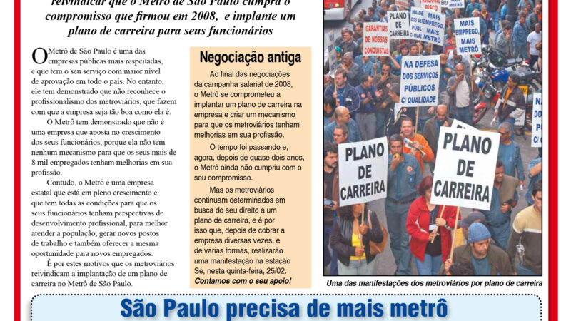 Informe Publicitário Publicações Informe Publicitário – Metronews – 03/09/2010 metroviarios 3 de setembro de 2010