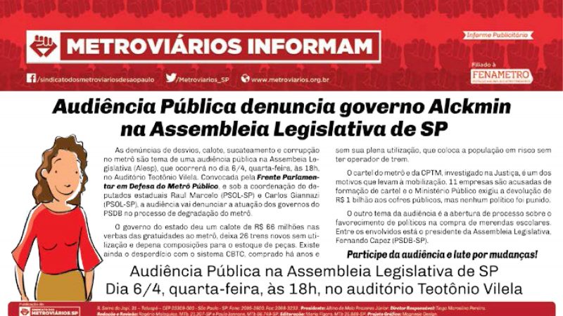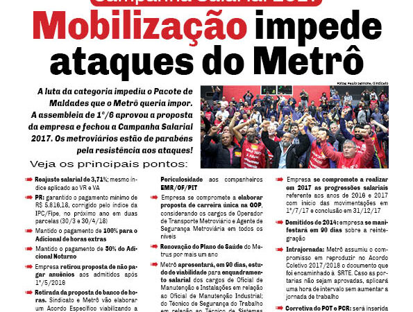 Notícias Sem categoria Últimas Notícias Ato em defesa do metrô público e de qualidade dia 27/9, às 14h30, na Sé metroviarios 24 de setembro de 2018