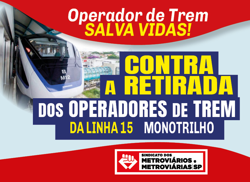 O Sindicato vem repudiar veementemente o descaso e o desrespeito por parte da GOP/OPC aos Operadores do monotrilho, retirando o cinturão de isolamento dos trens.