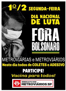 - Dia 1º (segunda-feira) – Dia Nacional de Luta pela vacina para todos, contra a Reforma Administrativa e as privatizações