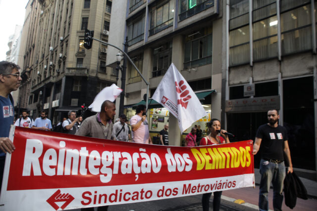 Ato em Barra Funda contra a privatização, a terceirização e demissões, em 15/8