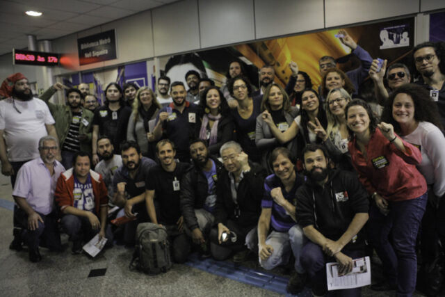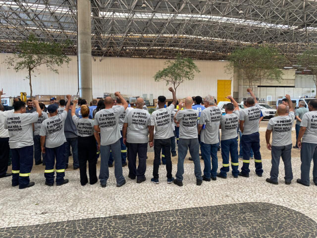 Trabalhadores do metrô realizaram um protesto na estação Brigadeiro, local onde ocorreu um incêndio na