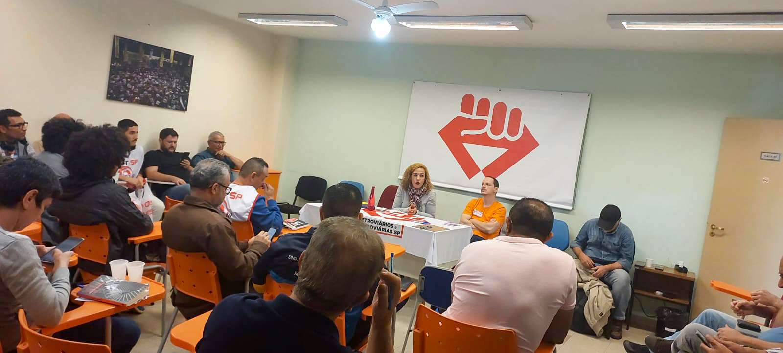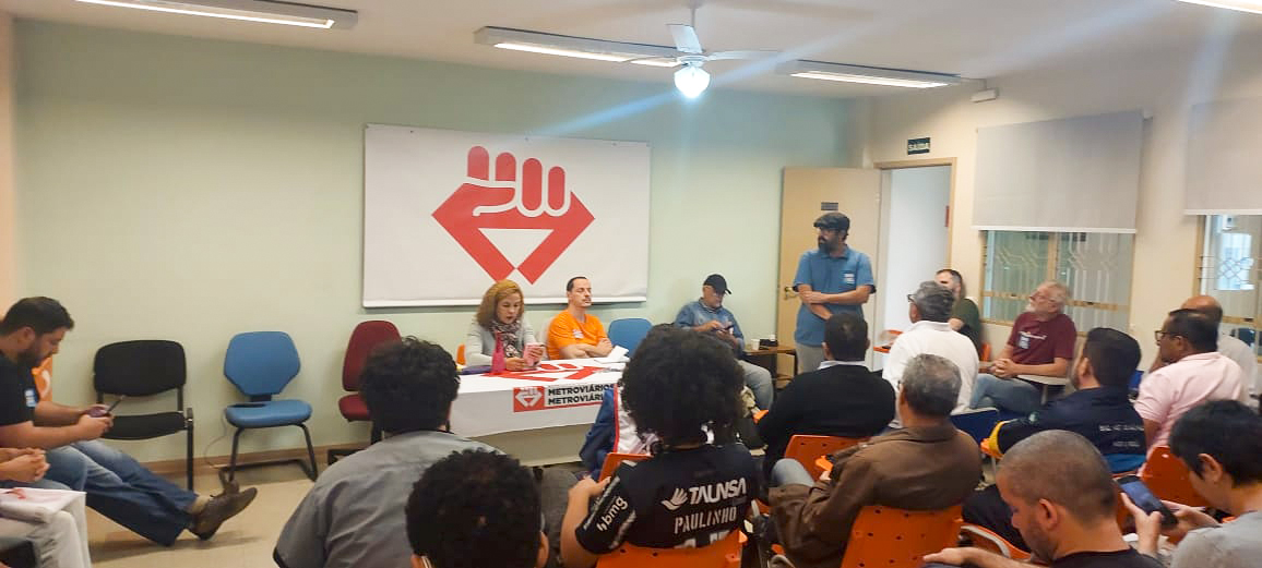 Reunião na manhã de 17/7, na sede do Sindicato dos Metroviários de SP, a Plenária Unificada Contra as Privatizações contou com a presença não só de metroviários, ferroviários e funcionários da Sabesp. Teve a participação de várias categorias profissionais, Centrais Sindicais, partidos políticos, a coDeputada Estadual Carolina Iara (PSOL), representantes de parlamentares e de uma entidade que age em defesa do consumidor (Idec).