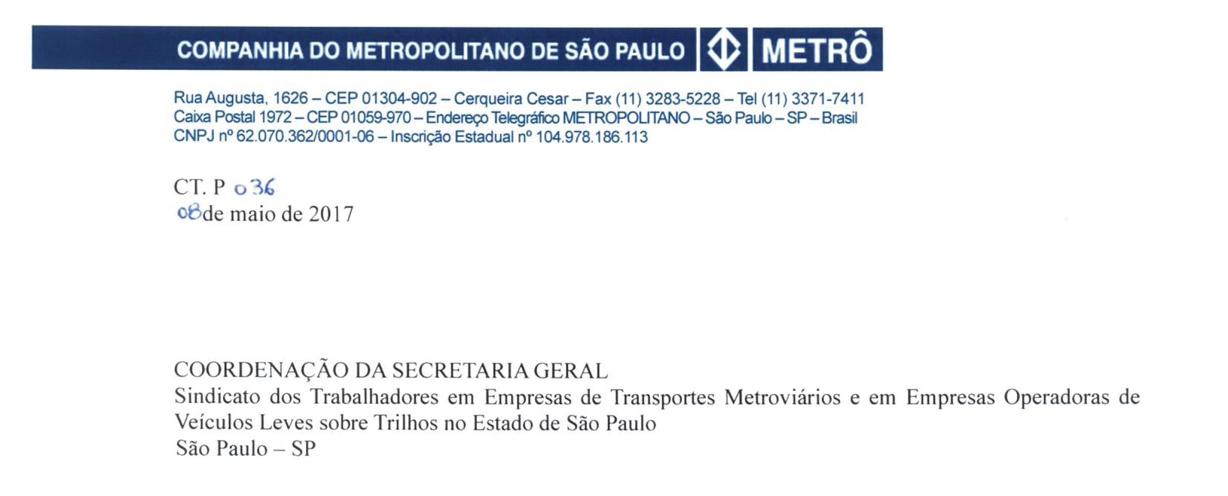 Notícias Slider Últimas Notícias Empresa mandou carta de ataques à categoria metroviarios 17 de maio de 2017