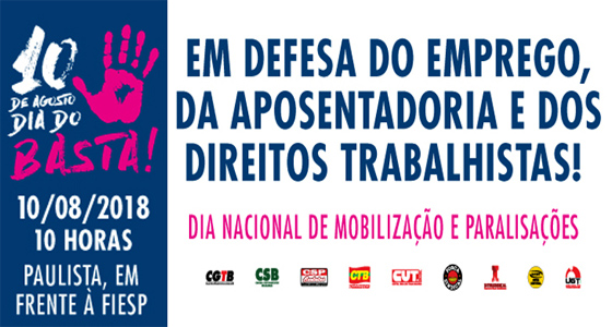 Notícias Últimas Notícias 10/8: Dia do Basta às privatizações, retirada de direitos e desmonte da aposentadoria metroviarios 31 de julho de 2018