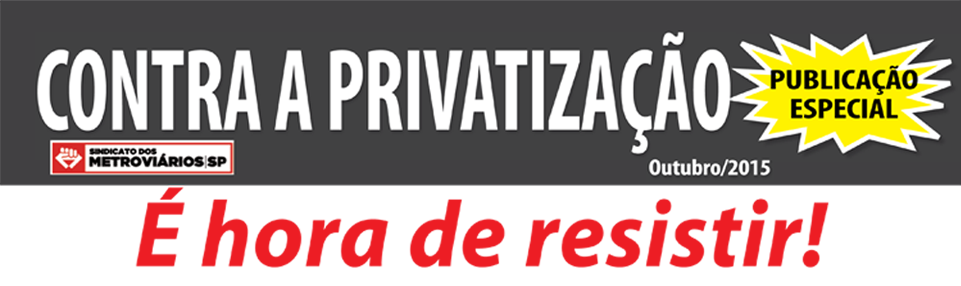 Notícias Últimas Notícias Acesse a Publicação Especial: CONTRA A PRIVATIZAÇÃO metroviarios 6 de outubro de 2015