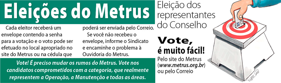 Imagem em Destaque Notícias Últimas Notícias Participe das eleições do Metrus metroviarios 29 de setembro de 2015