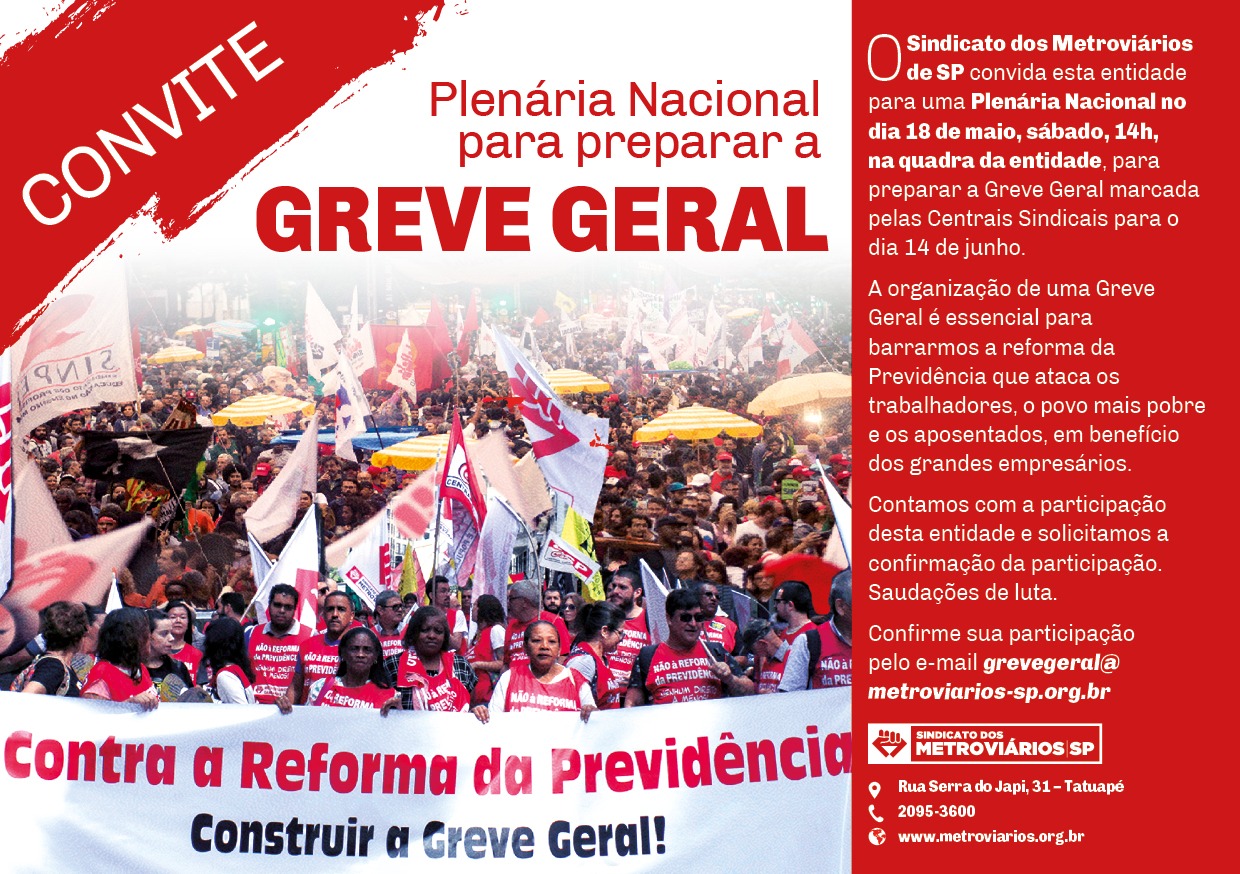 Notícias Últimas Notícias 18/5: Plenária Nacional para preparar a Greve Geral metroviarios 15 de maio de 2019
