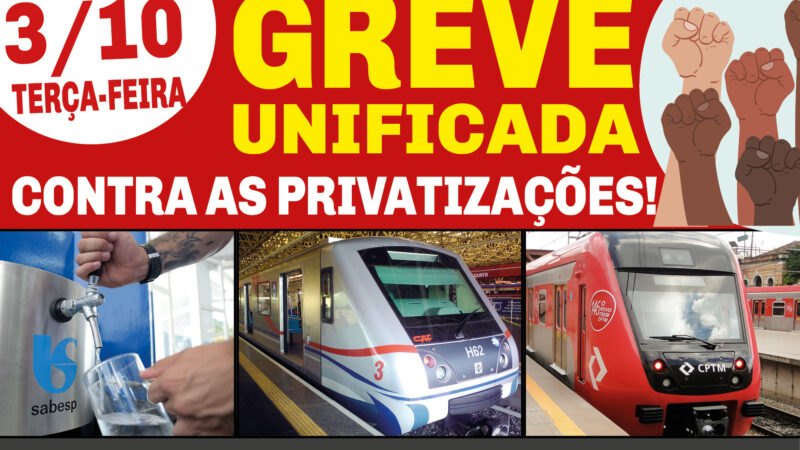 Metrô Notícias Últimas Notícias Terça-feira (28/11) é Greve: Sabesp, Metrô, CPTM, professores e Fundação Casa contra privatizações metroviarios 27 de novembro de 2023