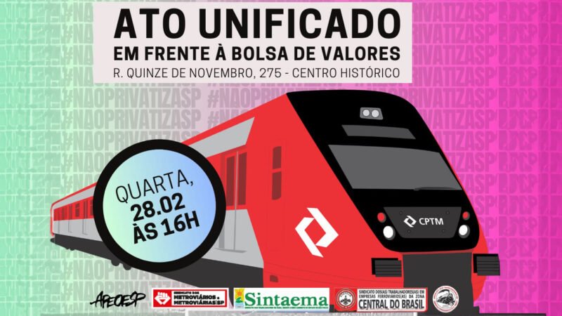 Notícias Últimas Notícias ATO UNIFICADO: Abaixo o leilão da Linha 7-Rubi da CPTM. Participe! metroviarios 27 de fevereiro de 2024