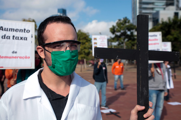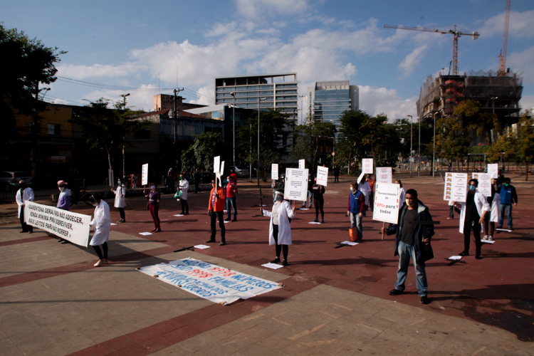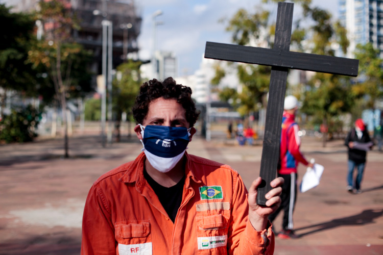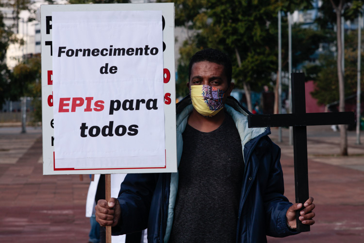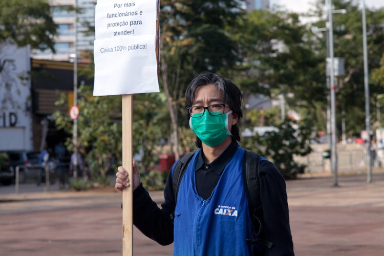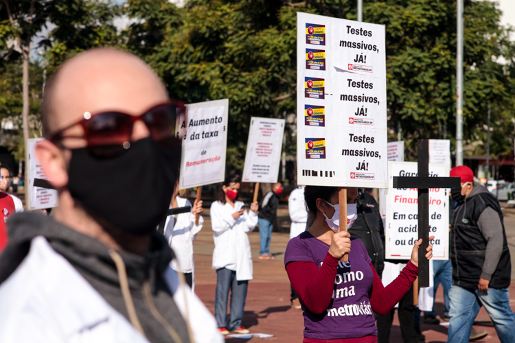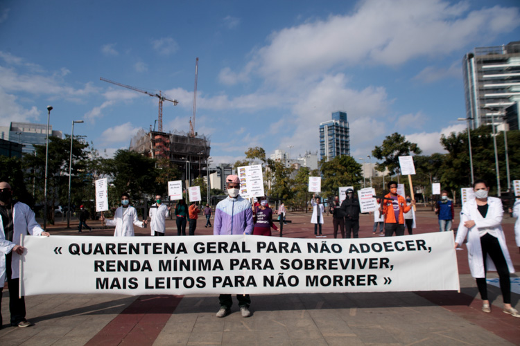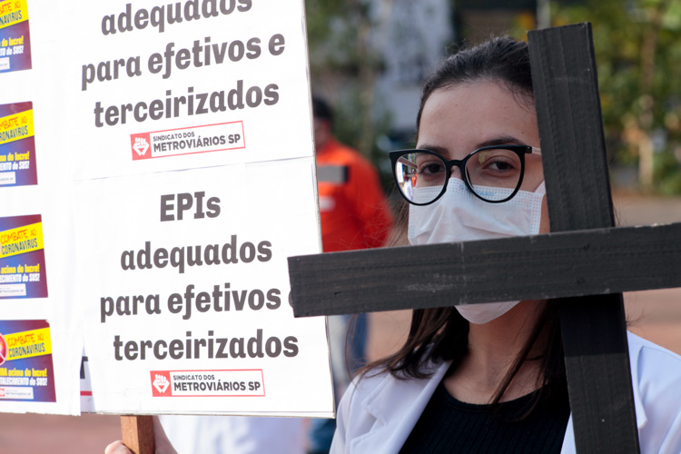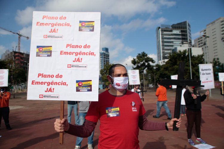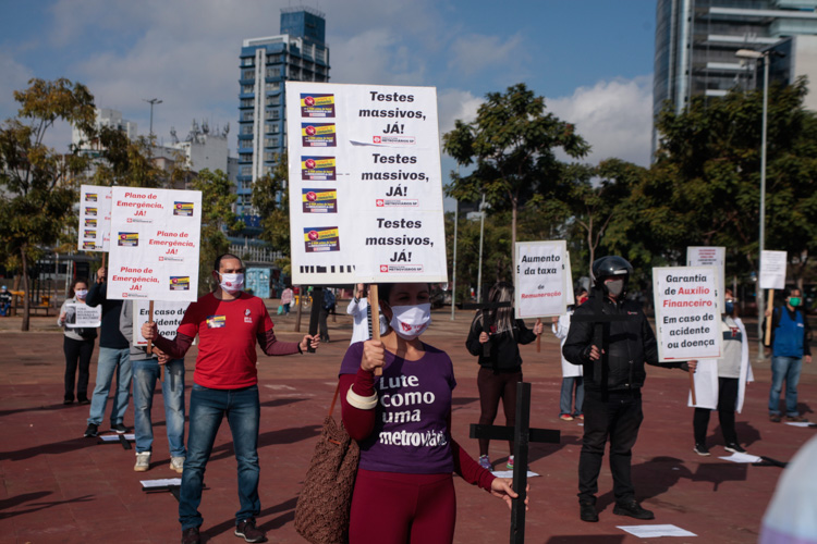 No dia 9/5, trabalhadores dos serviços essenciais (como profissionais da saúde, metroviários, bancários, petroleiros, motoboys, entre outros) realizaram um protesto, mantendo o distanciamento social, no Largo da Batata, em Pinheiros. O Sindicato participou do protesto tomando os cuidados. Defendemos a realização de um Plano de Emergência em Defesa da Vida, com transporte apenas para trabalhadores dos serviços essenciais para contribuir com a quarentena.