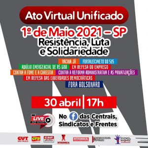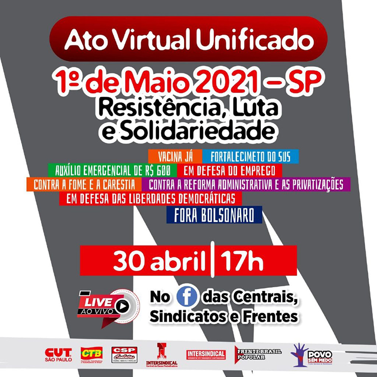1º de Maio: Ato Virtual Unificado, 30/4 às 17h