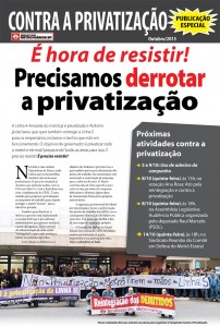 Acesse a Publicação Especial: CONTRA A PRIVATIZAÇÃO 6 de outubro de 2015 Notícias, Últimas Notícias Clique aqui e leia o material completo. contra a privatizaçãoespecial contra a privatização