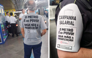 Continuamos com as mobilizações nas áreas, onde mantém a retirada de uniforme e uso da camiseta da campanha nas estações, tráfegos e CCO. Seguranças usam o braçal e adesivo. Manutenção trabalha com a camiseta.