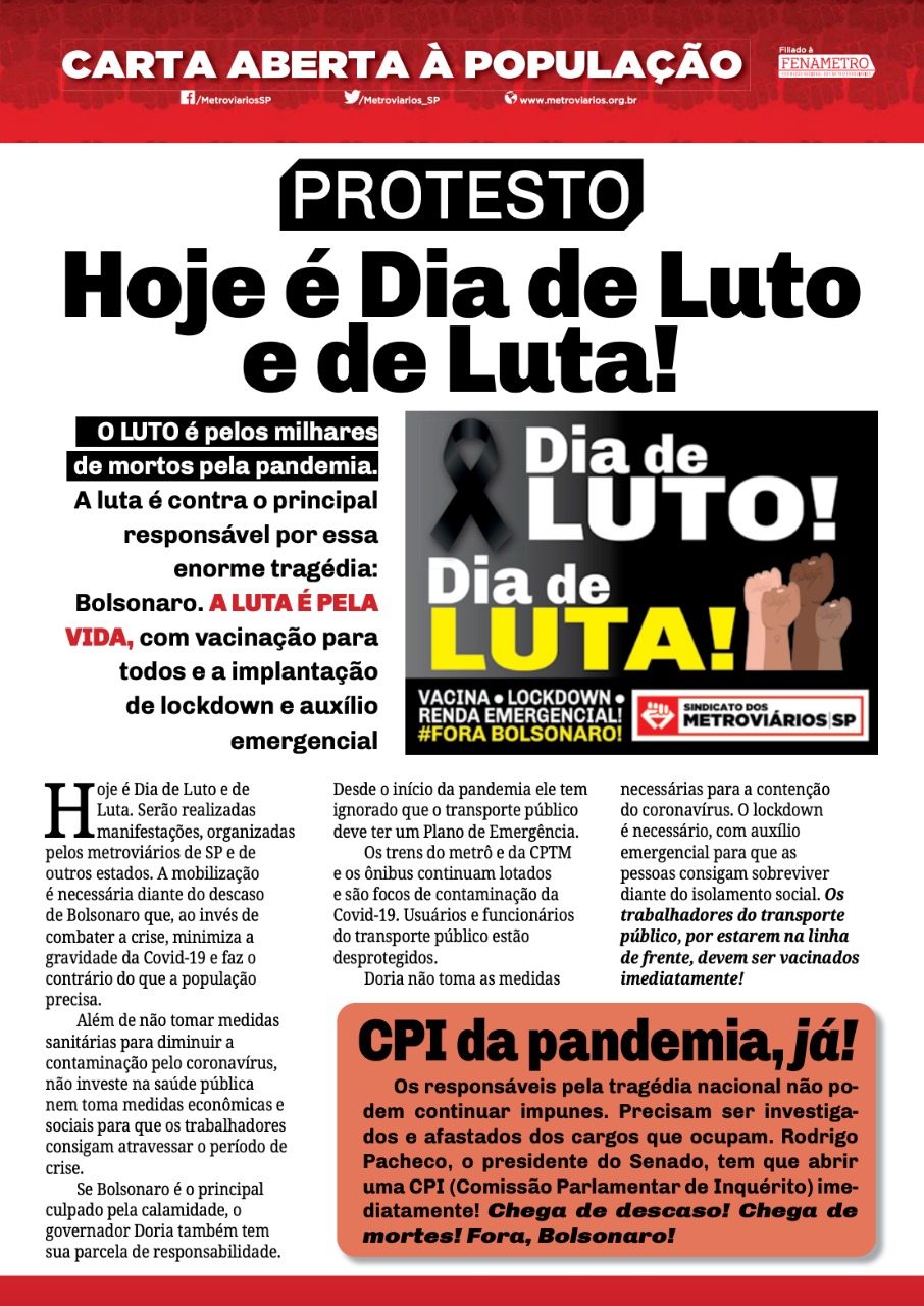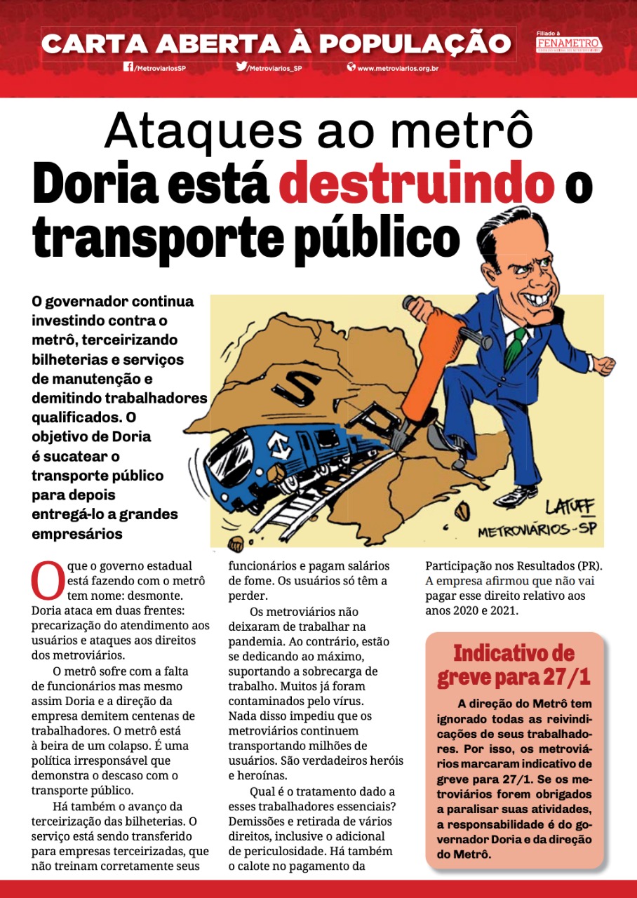 Carta Aberta Destaque Publicações Carta Aberta à População – 24/1/2022 metroviarios 24 de janeiro de 2023