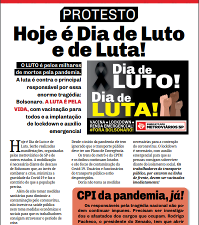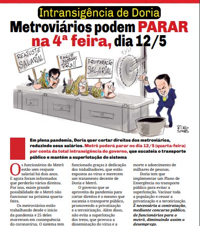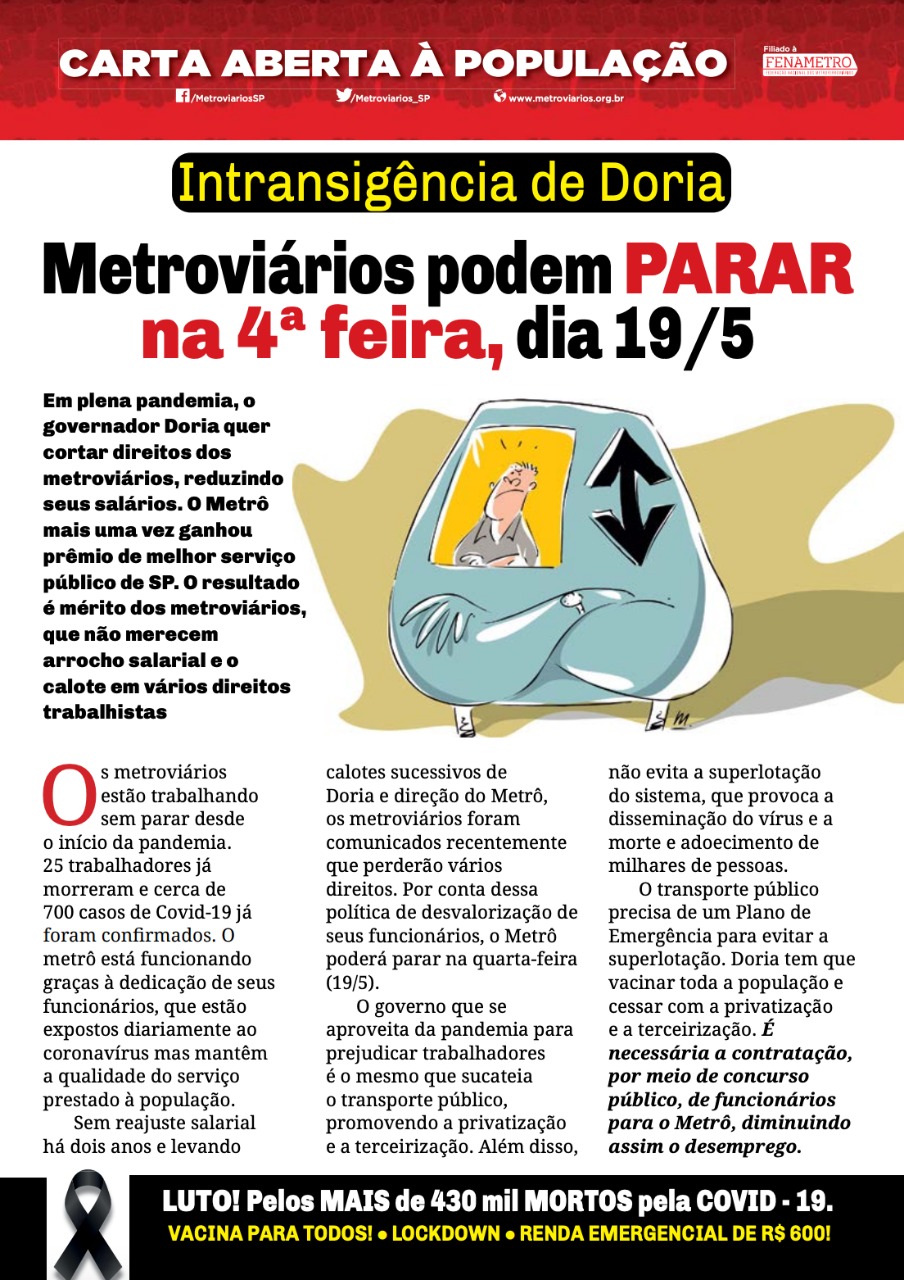 Carta Aberta Publicações Sem categoria Carta Aberta à População – 19/11/2021 metroviarios 19 de novembro de 2021