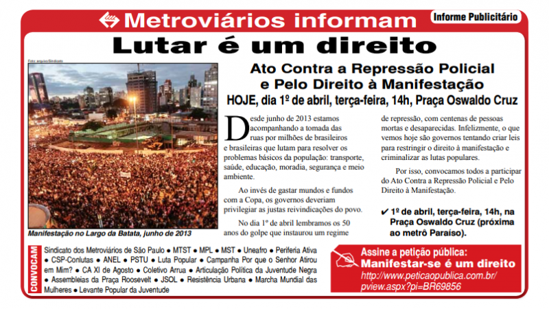 Informe Publicitário Informe Publicitário – Jornal Estação – 04/04/2014 metroviarios 4 de abril de 2014