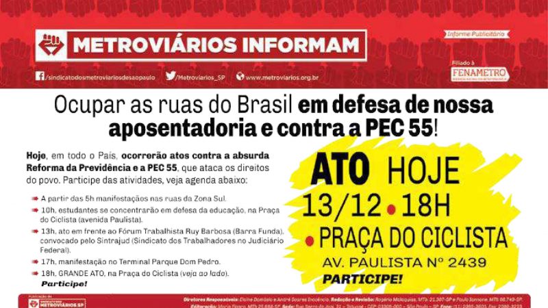 Informe Publicitário Informe Publicitário – Metrô News 13/12/2016 metroviarios 13 de dezembro de 2016