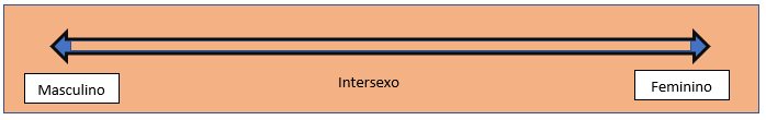 Intersexo: São pessoas que fogem dessa norma biológica do que se espera de corpos, ou seja, seria todo o espaço no meio dessa seta, ou ainda, fora dela. Pessoas que possuem atributos biológicos distintos dos esperados nos extremos da seta, desde uma questão puramente genética até atribuição física externalizada de fato. Antigamente eram chamadas de maneira pejorativa de “Hermafroditas”, termo que se refere a plantas e animais e está em completo desuso, uma vez que carrega estigmas que devem ser abolidos da linguagem. É a única parte da sigla que não se refere à identidade de gênero ou a sexualidade, mas a sexo biológico.