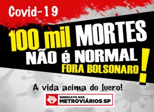 Neste dia 7/8, sexta-feira, é dia de lembrar as 100 mil mortes por Covid-19 que o País vai atingir essa semana por falta de uma política de saúde e pelo descaso do presidente com a vida do brasileiro