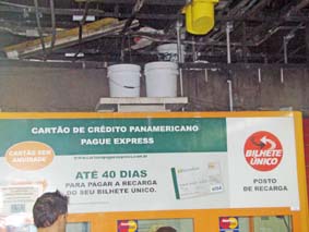 Não são só as ruas e casas de São Paulo que estão sendo afetadas pelas fortes chuvas que assolam a cidade desde o final do ano passado. A estação Brigadeiro também poderia entrar na contabilidade de pontos de alagamento na cidade, não fossem os vários baldes colocados estrategicamente no teto das bilheterias e da estação.