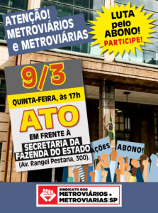 Atenção! Metroviários e metroviárias participem do ATO EM DEFESA DO ABONO!