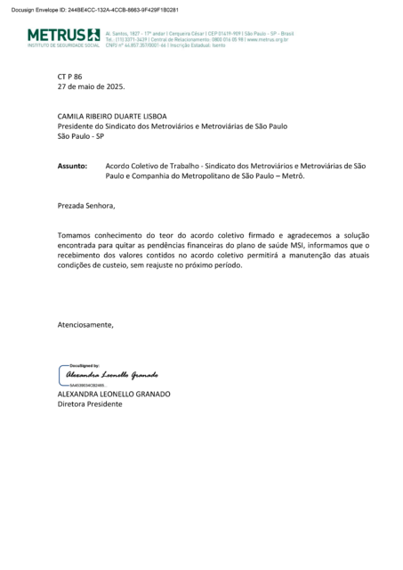 Na próxima eleição para os conselheiros do Metrus – que já está em curso – devemos ter a máxima atenção, para eleger pessoas comprometidas com a categoria e não chefes comprometidos com a direção do Metrô. Com a medida aprovada pela categoria, não teremos nenhum aumento. Ao lado, compartilhamos a carta enviada pela diretoria do Metrus após a decisão da nossa Assembleia.