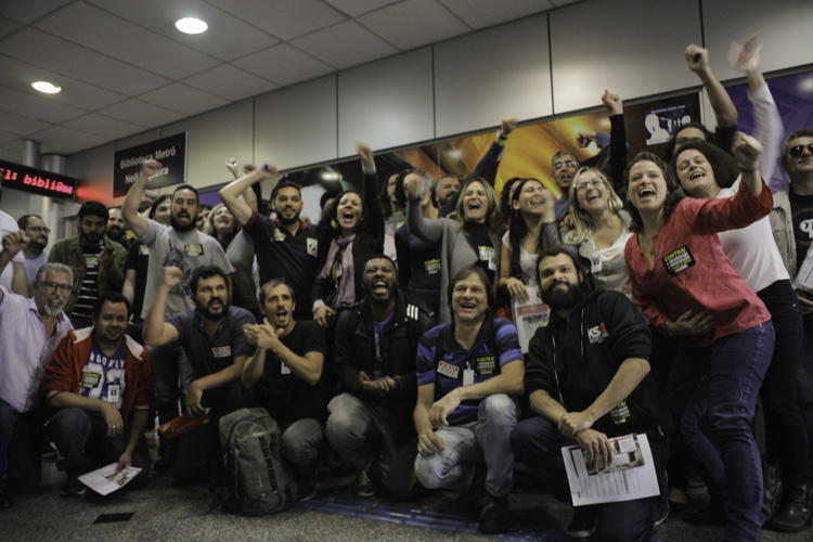 Reintegração dos metroviários 20 de junho de 2018 Fotos, Imagem em Destaque, Multimídia No dia 20/6/2018 os 37 metroviários demitidos após uma greve em 2014 foram reintegrados e retornaram aos postos de trabalho. campanha pela reintegraçãoreintegração