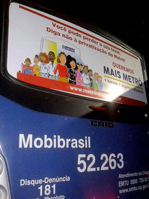 Fotos Imagem em Destaque Multimídia Banner da Campanha Contra a Privatização em ônibus metroviarios 29 de julho de 2016