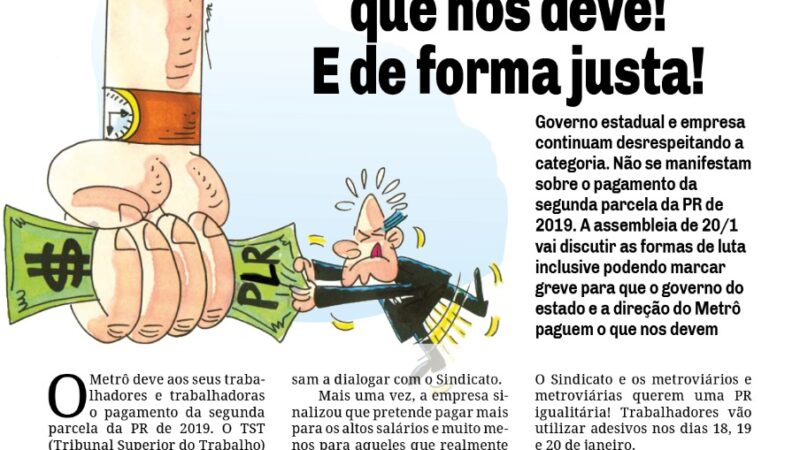 Notícias Últimas Notícias Metrô: pague o que nos deve! Assembleia dia 20 vai aprovar formas de lutas metroviarios 13 de janeiro de 2022