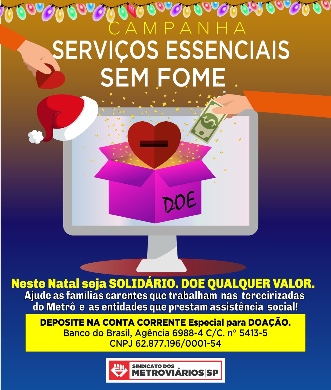 Notícias Últimas Notícias Campanha de Solidariedade: Serviços Essenciais sem fome metroviarios 16 de junho de 2020