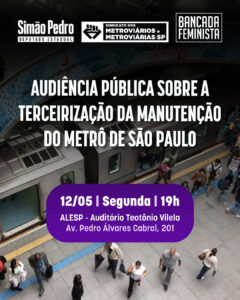 👉🏾 AUDIÊNCIA PÚBLICA SOBRE A TERCEIRIZAÇÃO DA MANUTENÇÃO DO METRÔ DE SÃO PAULO