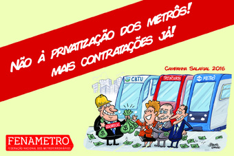 A Federação Nacional dos Metroviários (FENAMETRO) está realizando uma ampla campanha contra a privatização dos metrôs e exigindo mais contratações. Por isso, os companheiros fizeram um adesivo para contribuir com as Campanhas Salariais nos estados.